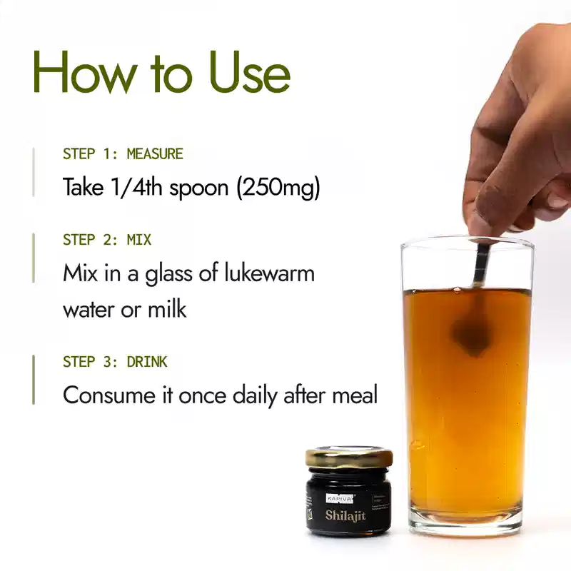 Kapiva Himalayan Shilajit should be consumed in a dosage of ΒΌ spoon, once daily after a meal.