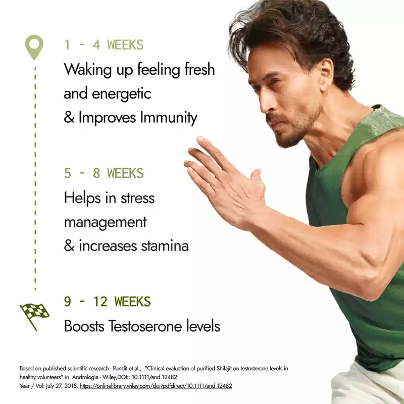 With daily use of Kapiva Shilajit, you may notice improved energy and immunity within the first 4 weeks. Continued consumption for 8 weeks can support better stamina and stress reduction, while 12 weeks of use may help enhance testosterone levels. For best results, take Kapiva Shilajit once a day after a meal.